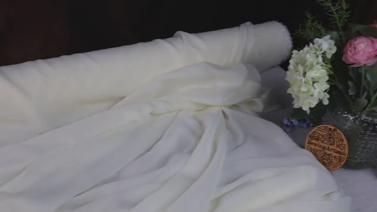 Ivory Polyester Chiffon Fabric: Soft Matte Drape, By The Yard